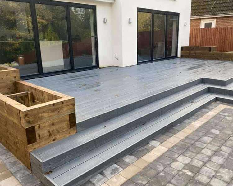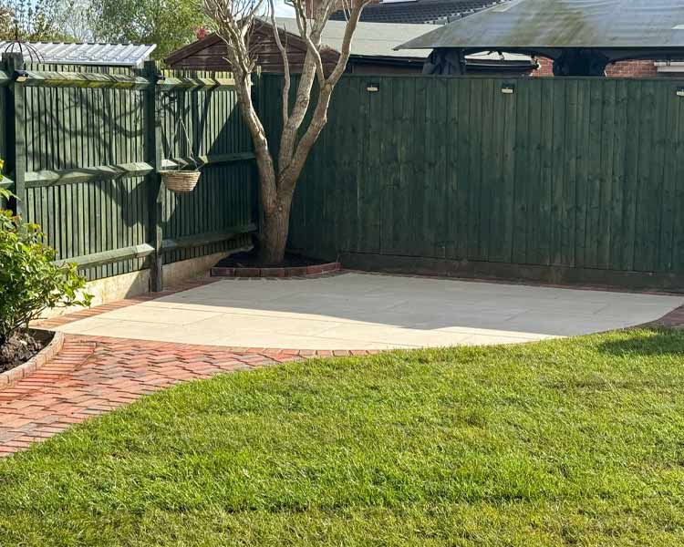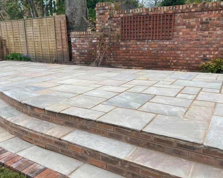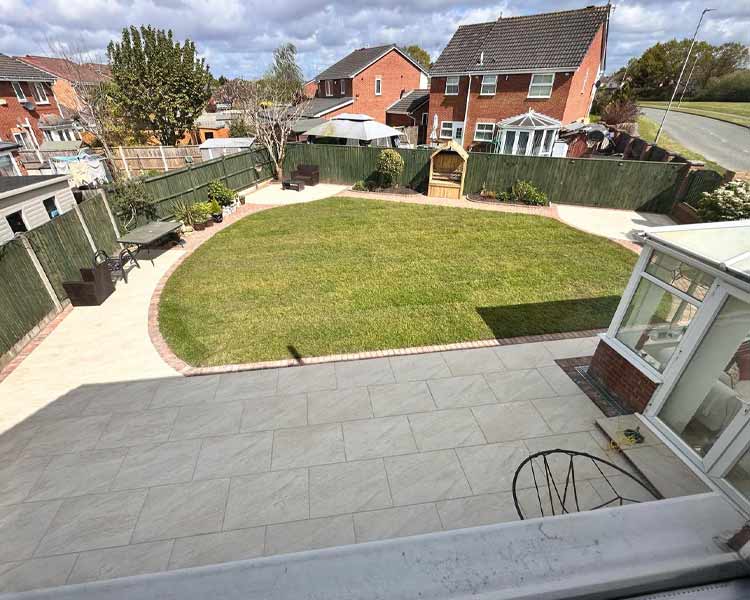 We design and install patios and paved outdoor living areas using high-quality materials such as natural stone, Raj blends, porcelain slabs, and more, serving customers throughout Greasby and surrounding locations.